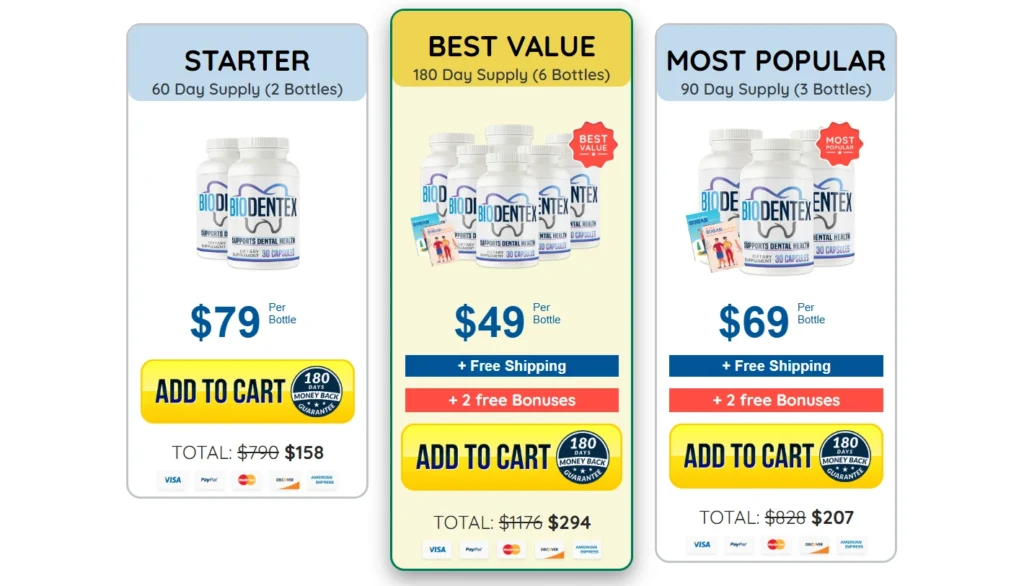 Biodentex is available exclusively through the official website to ensure product quality and authenticity. Ordering directly allows you to access current offers and secure shipping. Delivery times may vary depending on your location and the shipping option selected at checkout.